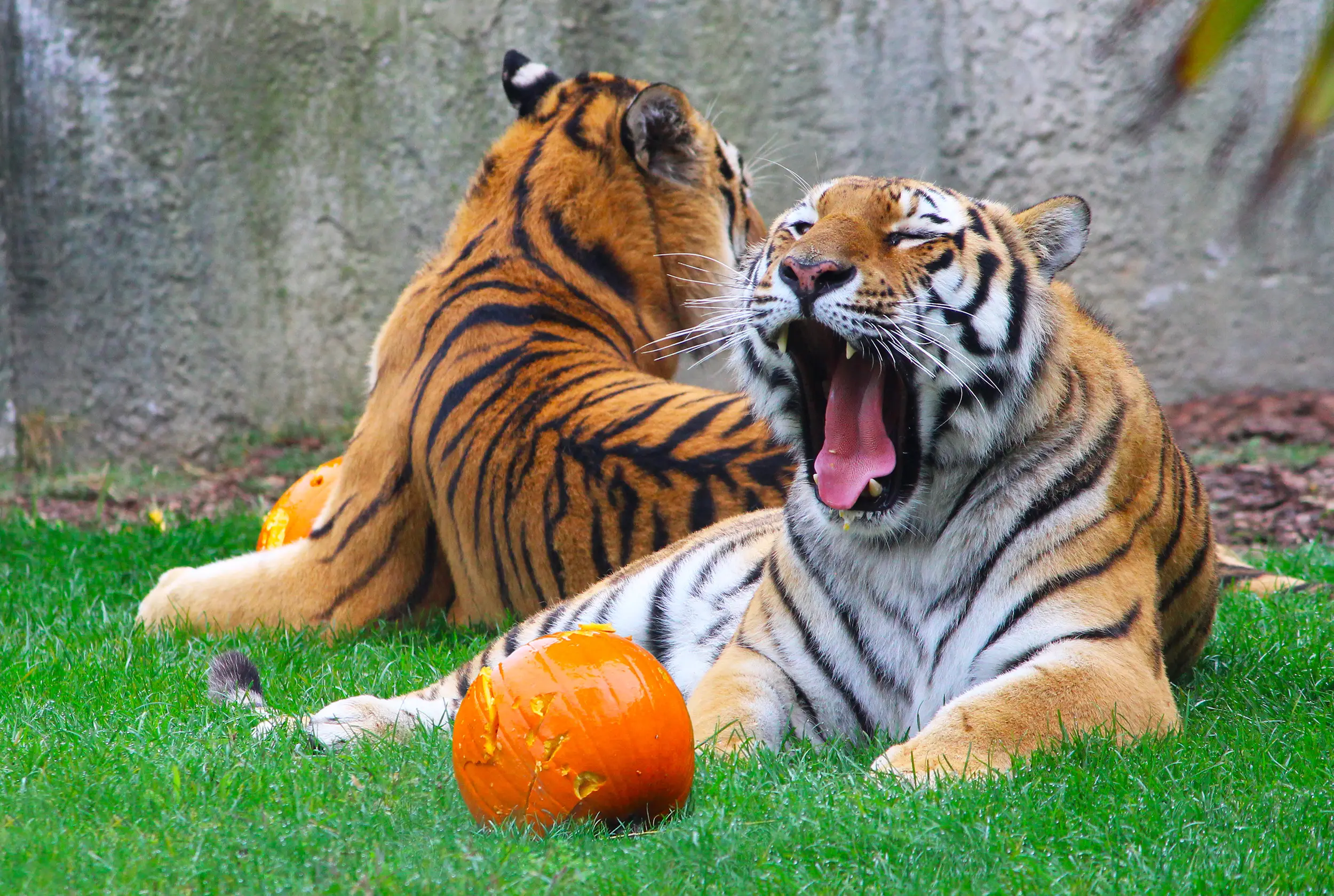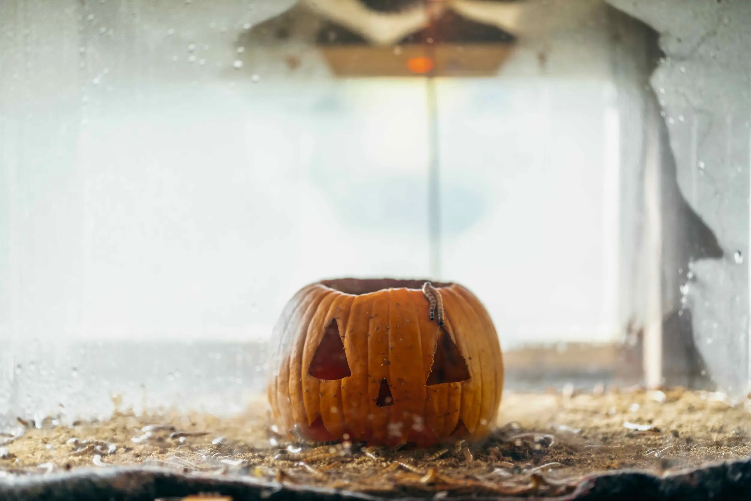 Accompagna un keeper a portare tanti arricchimenti a tema halloween per gli animali ospiti al parco