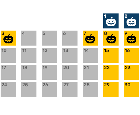 ORARI HALLOWEEN NIGHTS (18-25-26-31 ottobre 1-2 novembre)